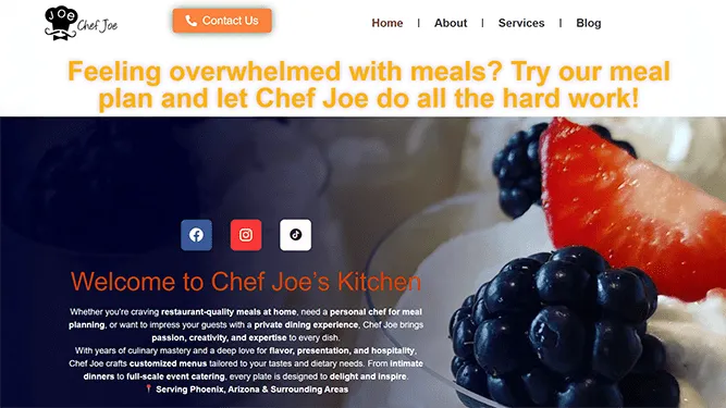 Now, visitors can explore his services, book a meal or event, and connect instantly through built-in social channels all while experiencing the premium, personalized touch that defines Chef Joe’s brand.